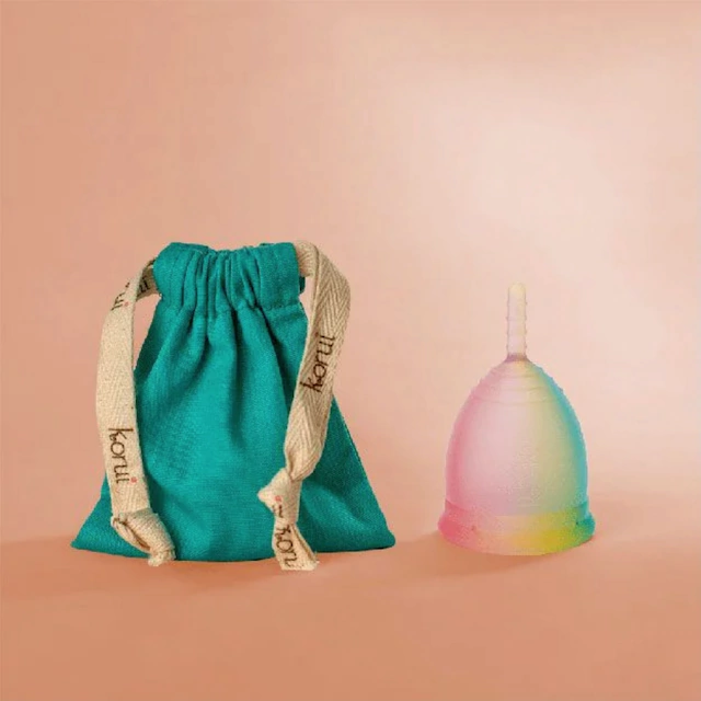 O coletor menstrual Korui é um copinho de puro silicone medicinal que é dobrado e inserido no canal vaginal para coletar o sangue menstrual. Ele forma um vácuo que impede vazamentos e te deixa completamente livre durante até 12 horas + uma bolsinha para você levar onde estiver.